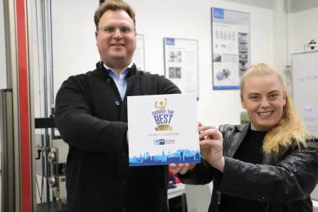 „Simply the Best – Die Besten Azubis 2025“ steht auf der Plakette der IHK Arnsberg Hellweg-Sauerland. Mit dem Ende Oktober übersandten Schild möchte die IHK den Ausbildungserfolg im Ausbildungsbetrieb Fachhochschule Südwestfalen wertschätzen. Ganz persönlich gemeint sind damit die Auszubildende Inga Rusche und ihr Ausbilder Michael Robrecht.