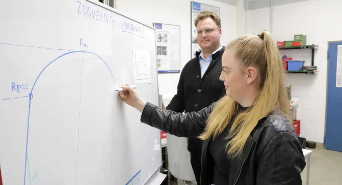 Inga Rusche hat in den letzten drei Jahren ihre Ausbildung zur Werkstoffprüferin Fachrichtung Metalltechnik im Labor für Werkstofftechnik in Soest absolviert und vorzeitig abgeschlossen. Probenvorbereitung, Probenpräparation, mechanische Werkstoffprüfung oder Schadensanalyse und -auswertung: All das gehörte zu ihren fachlichen Ausbildungsinhalten. „Dabei habe ich hier im Labor gelernt, über den Tellerrand zu schauen“, so Rusche. „Nicht immer nur das Offensichtliche zu sehen, sondern zu hinterfragen, was zu sehen ist.“