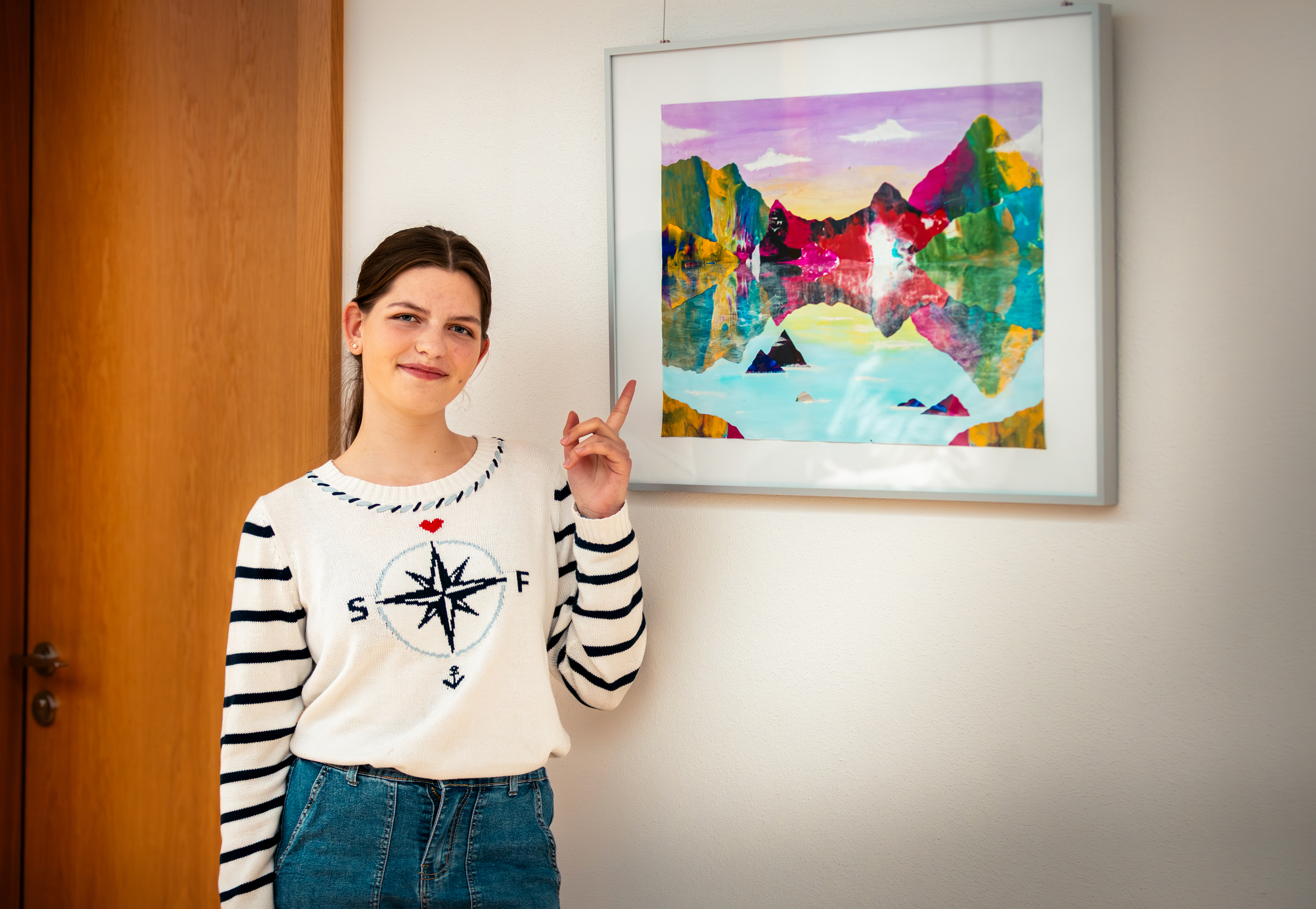Ein ganz anderes, aber ebenso leuchtendes Werk lieferte Anna Kaufmann aus der Klasse 9 des Mariengymnasiums Arnsberg. Ihr Bild, eine abstrakte Landschaft in intensiven, leuchtenden Farben, wurde von der Hochschule ausgewählt, um in diesem Jahr den offiziellen Weihnachtsgruß zu zieren.