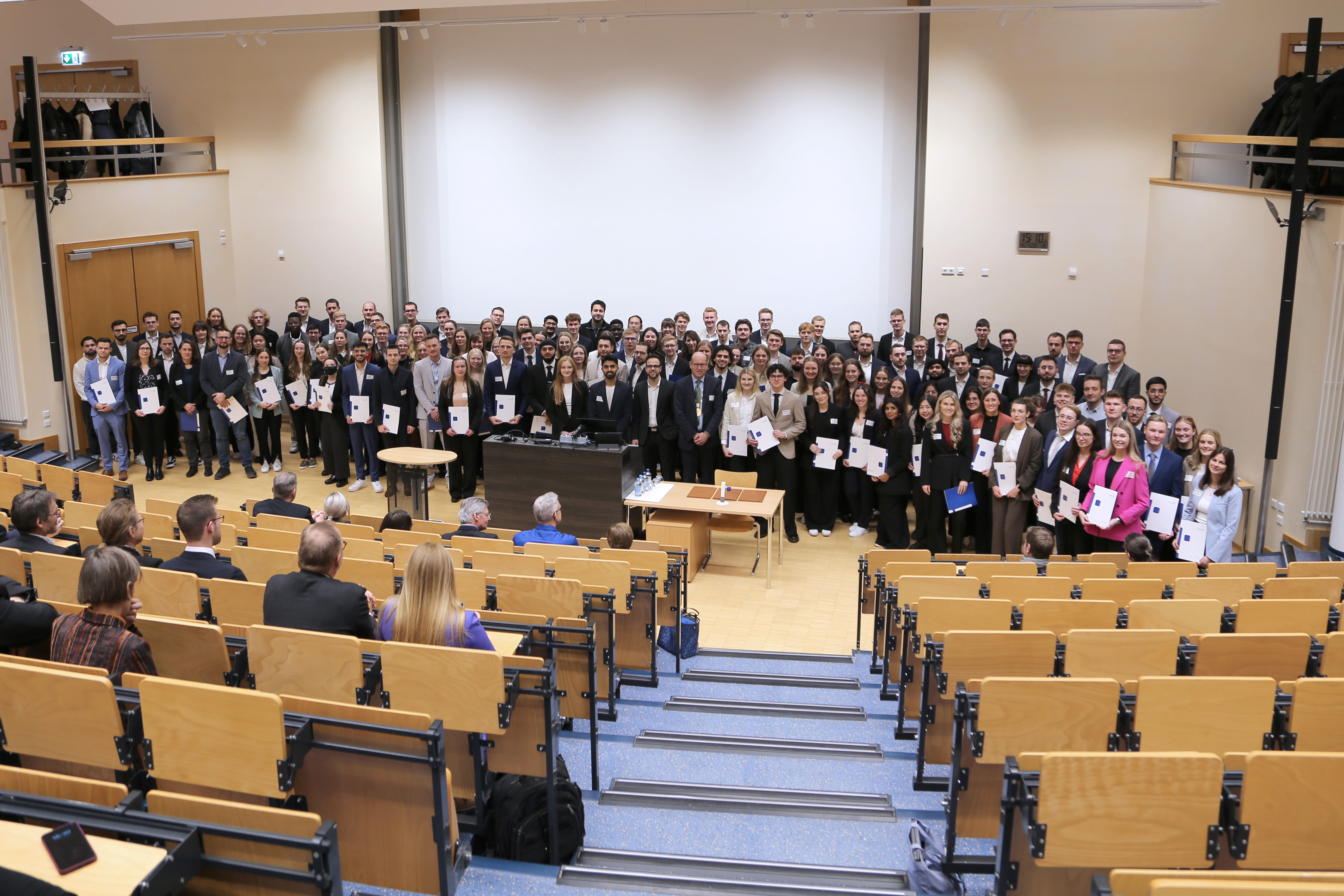 Im Rahmen der Preisverleihung nahmen auch die Studierenden ihre Förderurkunden entgegen, die im Förderjahr 2025/26 das Deutschlandstipendium erhalten.146 talentierte Studierende der Hochschule werden dabei von Institutionen und Unternehmen aus der Region unterstützt. Beim Deutschlandstipendium engagieren sich private Geldgeber und der Bund gemeinsam für den leistungsstarken akademischen Nachwuchs. Mit 300 Euro pro Monat werden talentierte Studierende unterstützt, damit sie im Studium ihr Potenzial ausschöpfen und sich weiterhin mit hoher Leistungsbereitschaft einbringen können. 150 Euro übernehmen private Förderer, 150 Euro kommen vom Bund dazu. Die Förderung im Rahmen des Deutschlandstipendiums ist personenunabhängig, die Auswahl der Stipendiatinnen und Stipendiaten erfolgt durch Kommissionen an den jeweiligen Standorten.